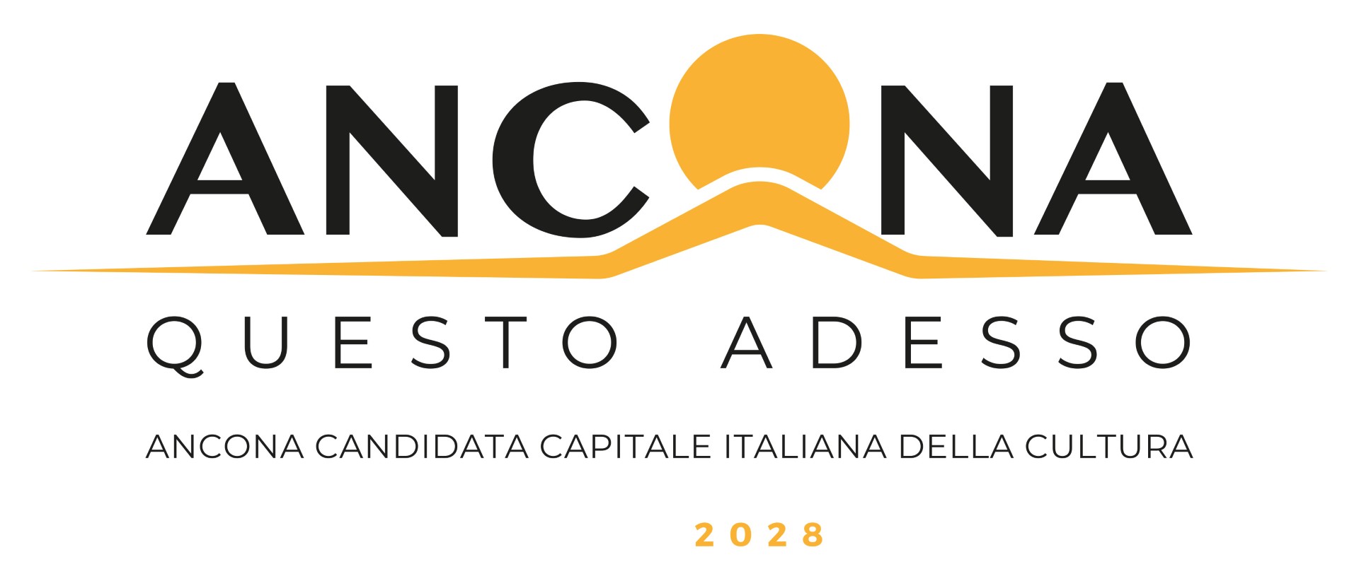 Gli studenti sono stati coinvolti per dare voce alle nuove generazioni e rappresentare la visione futura della città. Nei colori giallo e nero, prende forma un gomito stilizzato: evocazione grafica del promontorio, dall’antico nome greco della città “Ankón” (gomito), proteso sull’Adriatico, dove la curva valorizza la relazione città-mare e la rara condizione visiva in cui, dallo stesso punto di terraferma, si può osservare il sole sorgere e tramontare sul mare. Il payoff, ispirato ai versi del poeta Scarabicchi, Questo Adesso, completa l’identità visiva infondendo poesia e radicamento. Il logo viene declinato nei colori e arricchito con simboli grafici distintivi per le diverse macroaree tematiche del progetto: Questo Mare (Arco di Traiano nel porto antico), Via Maestra (leone stiloforo del protiro di San Ciriaco), Adesso Parco (falesia a picco sul mare), Mare Culturale (Mole Vanvitelliana).